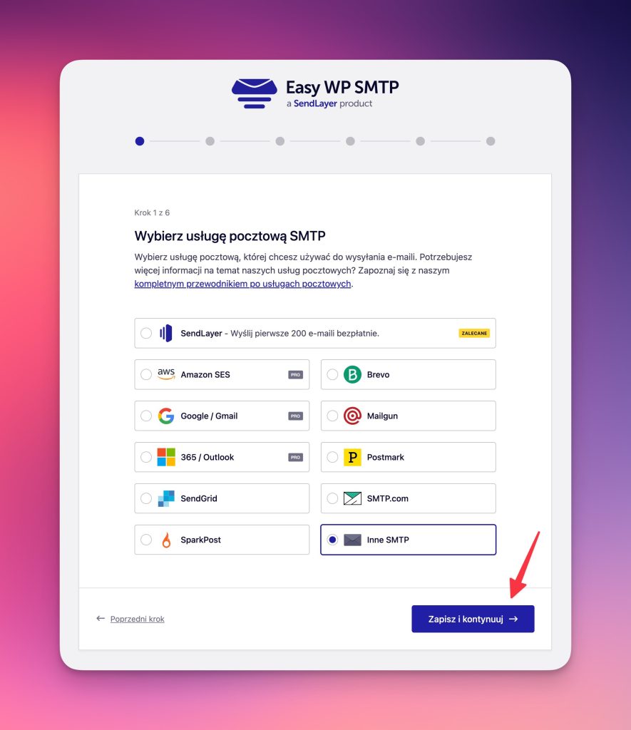 W konfiguracji wtyczki musimy wybrać „Inne SMTP”.