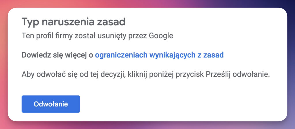 Najczęściej popełniane błędy przy odwołanie Profilu Firmy w Google